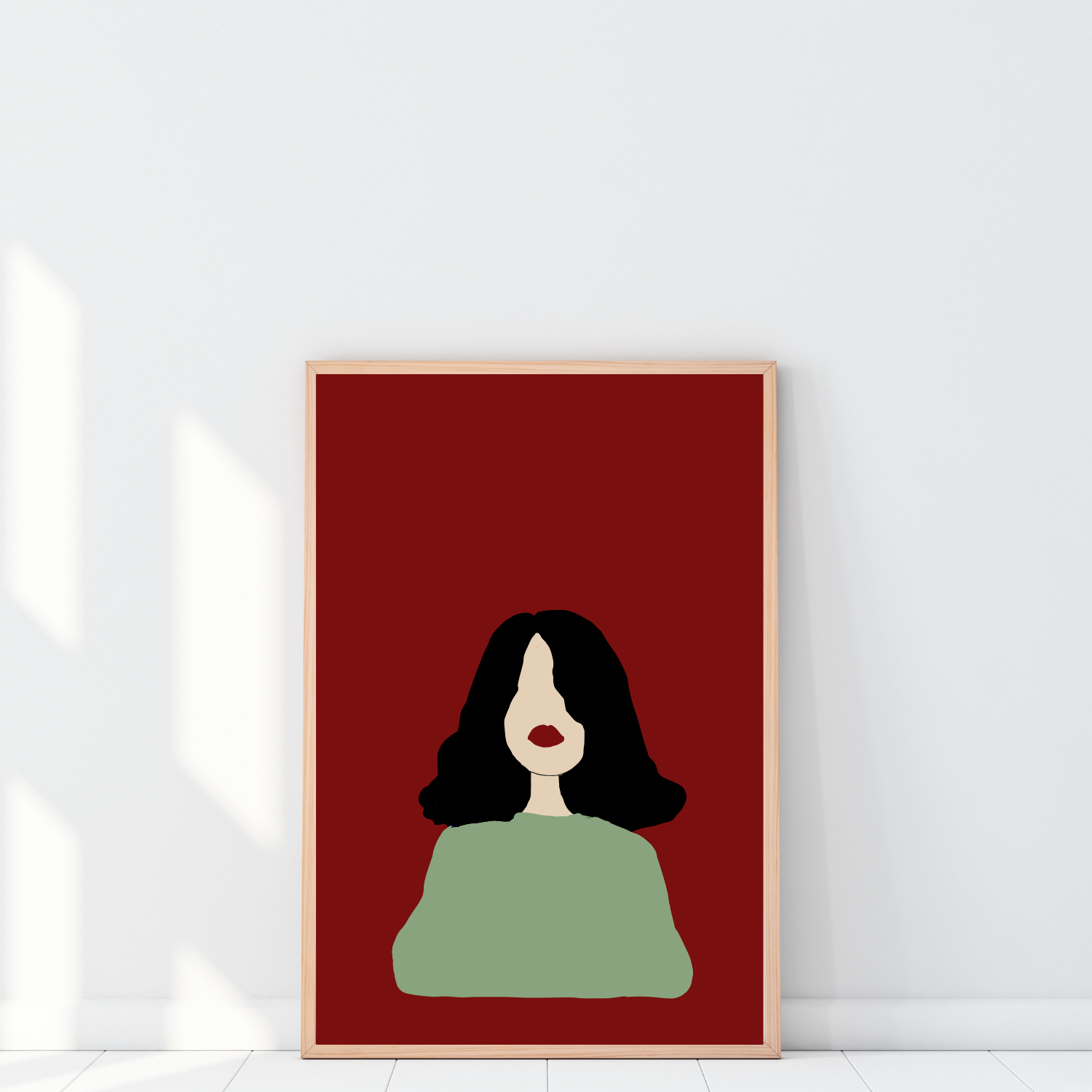 Plakat z autorskim portretem kobiety na burgundowym tle Ciche emocje to naprawdę wyrazista dekoracja ścienna, która natychmiast przyciąga uwagę i nada Twojemu wnętrzu elegancki i nowoczesny charakter. Zaczerpnij inspiracji, wybierz burgund jako kolor przewodni swoich dodatków do domu i stwórz dzięki temu spójną całość, która będzie idealną dekoracją Twojego salonu lub przedpokoju.
