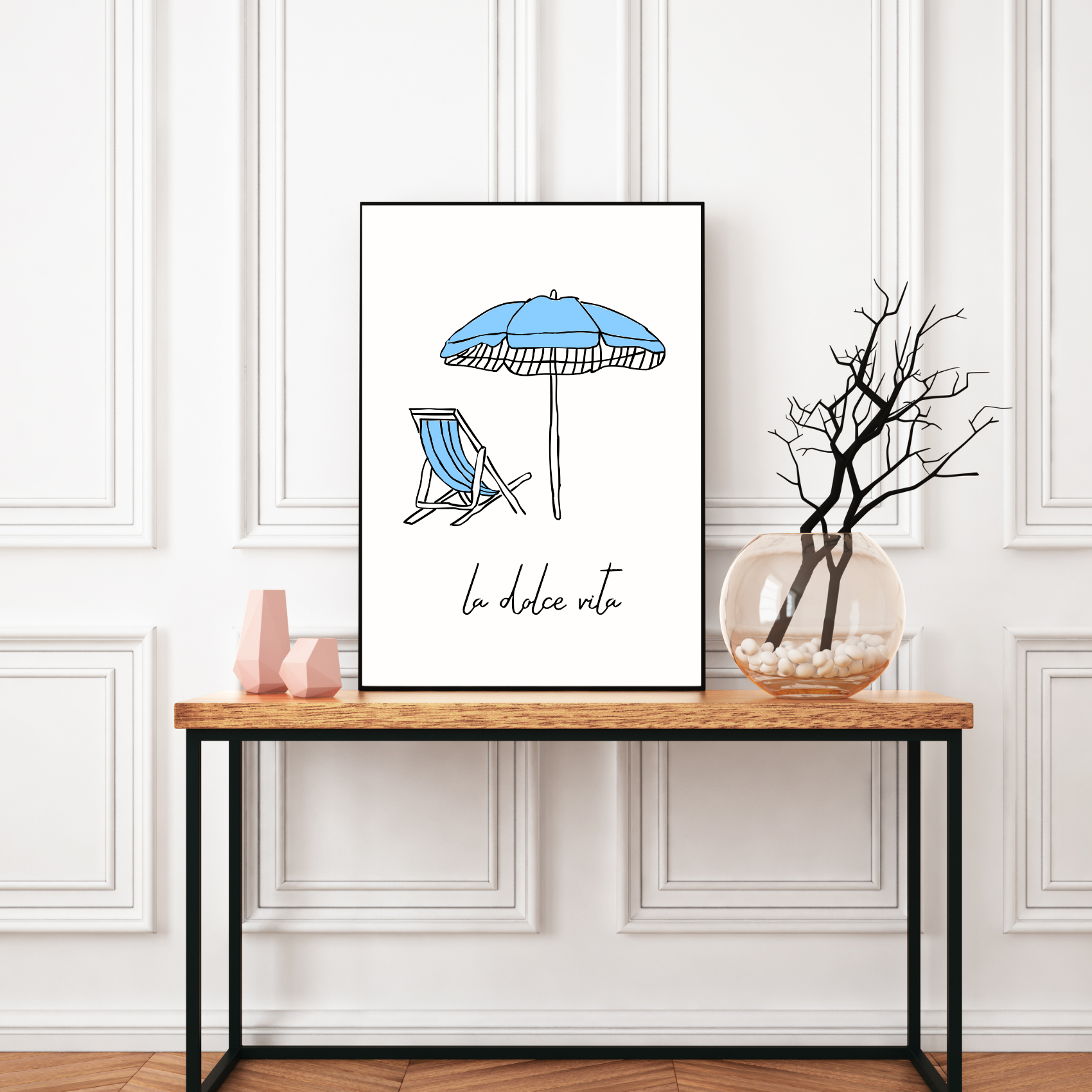 Minimalistyczny plakat do salonu La dolce vita obrazuje to, za czym tęsknisz przez większość roku. Może stać się unikatową dekoracją w Twoim salonie, tuż nad kanapą. Podaruj sobie klimat długich, letnich dni.