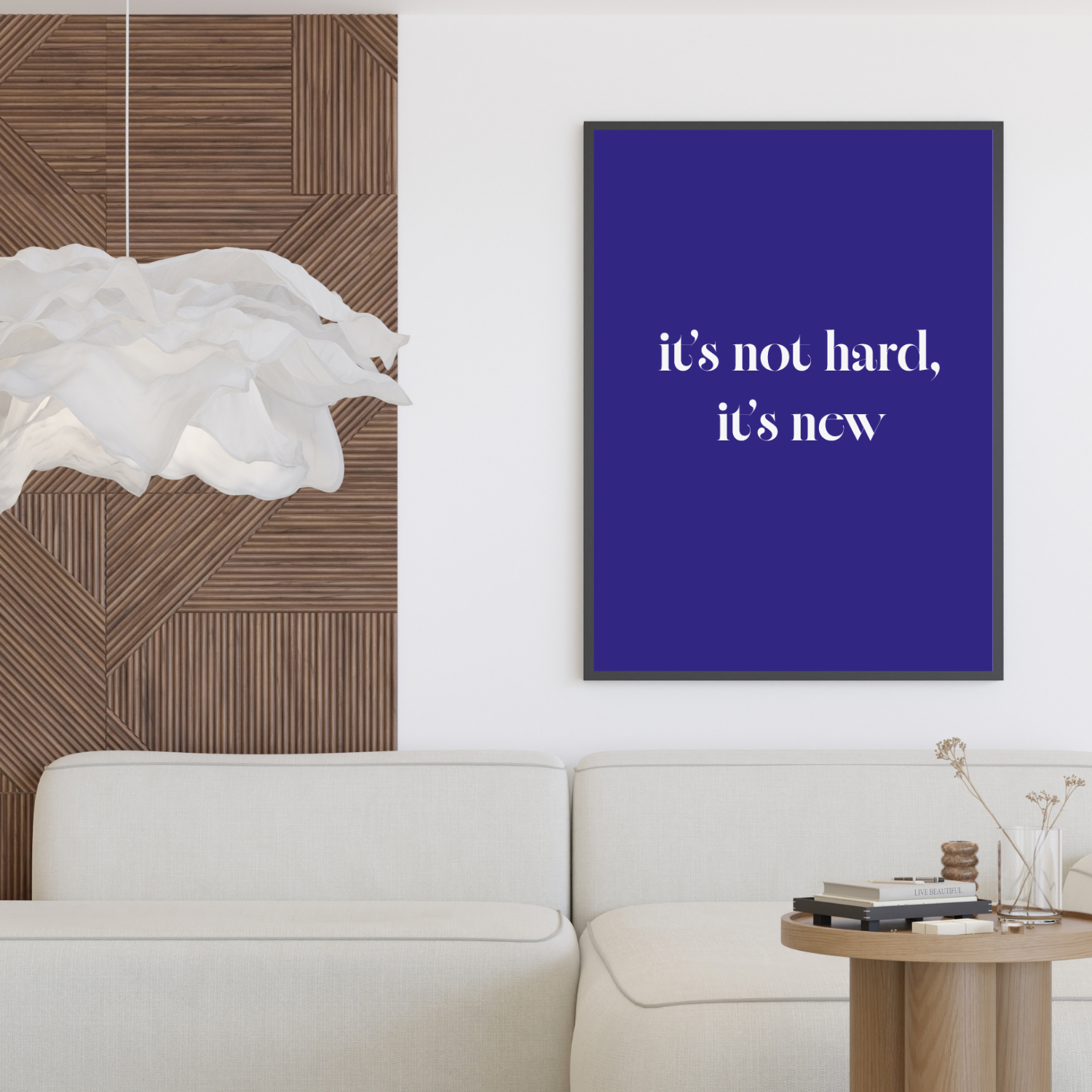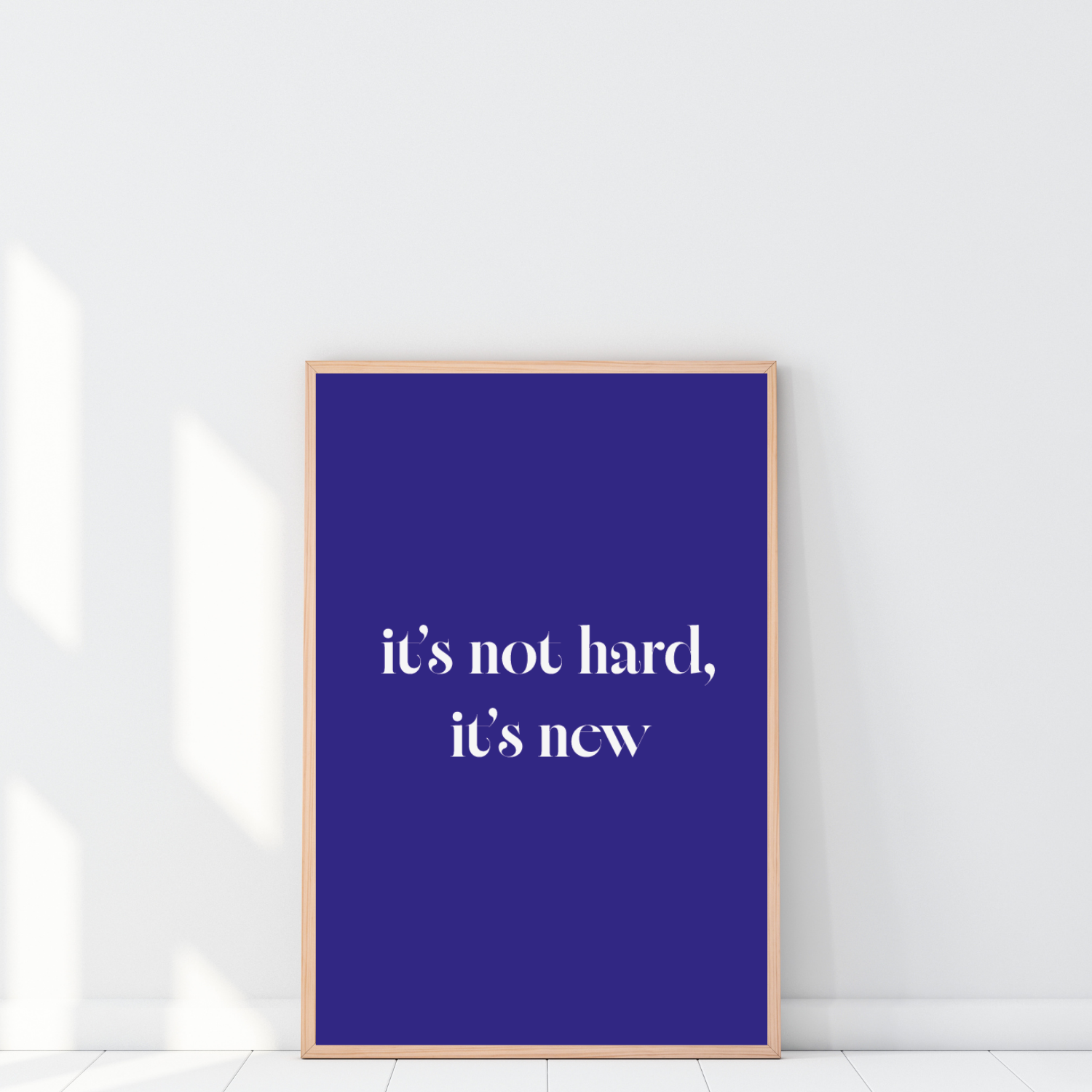 Plakat motywacyjny It's not hard, it's new to nowoczesna dekoracja ścienna, która zmienia Twój sposób myślenia o wyzwaniach. Krótkie, ale mocne hasło będzie Ci przypominać, że trudności często wynikają z nowości, a nie z braku umiejętności.